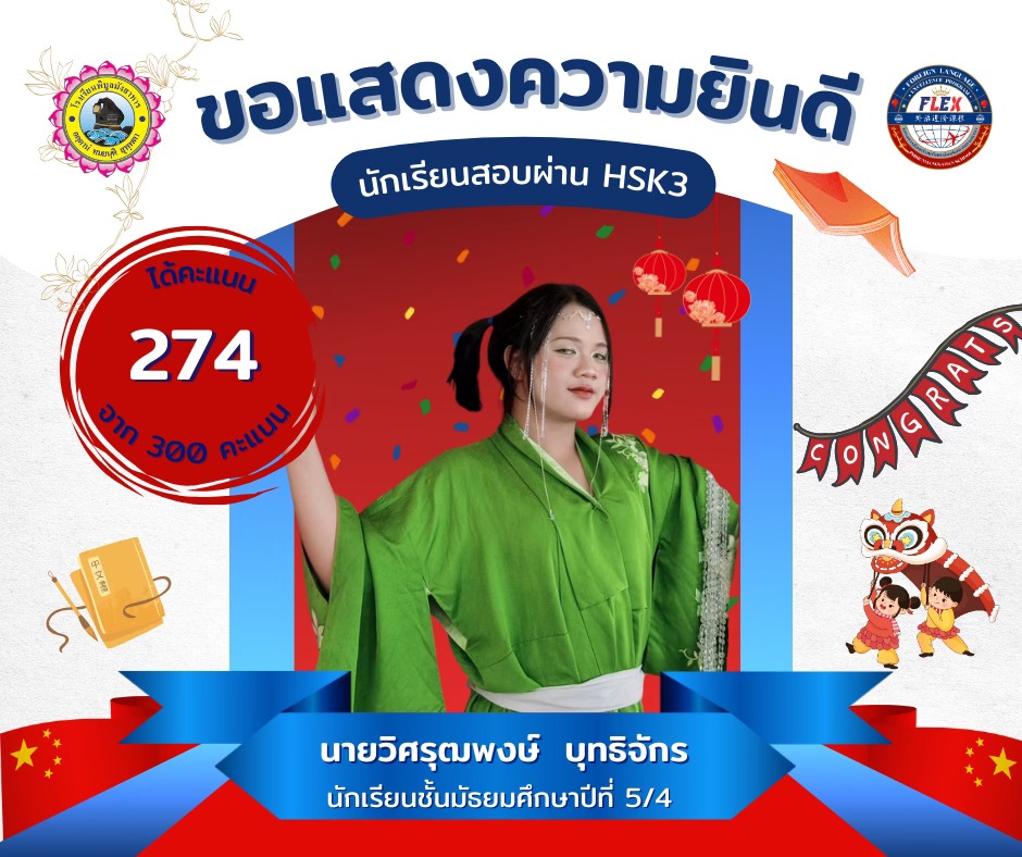ที่สามารถสอบผ่านการสอบวัดระดับความรู้ภาษาจีน 汉语水平考试 (HSK) ระดับ 3
